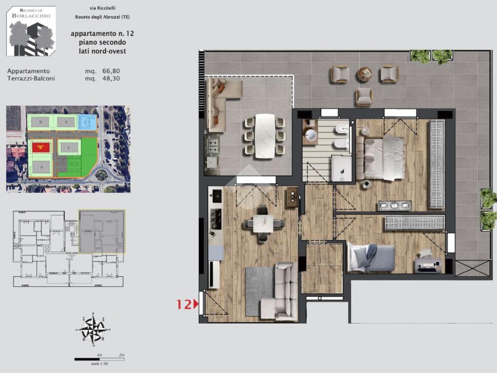 A Roseto degli Abruzzi, nel nuovo e prestigioso complesso Residenze Borsacchio, composto da 5 palazzine moderne che si illuminano scenograficamente di notte, proponiamo in vendita un trilocale di nuova generazione con terrazzo perimetrale e massima efficienza energetica.