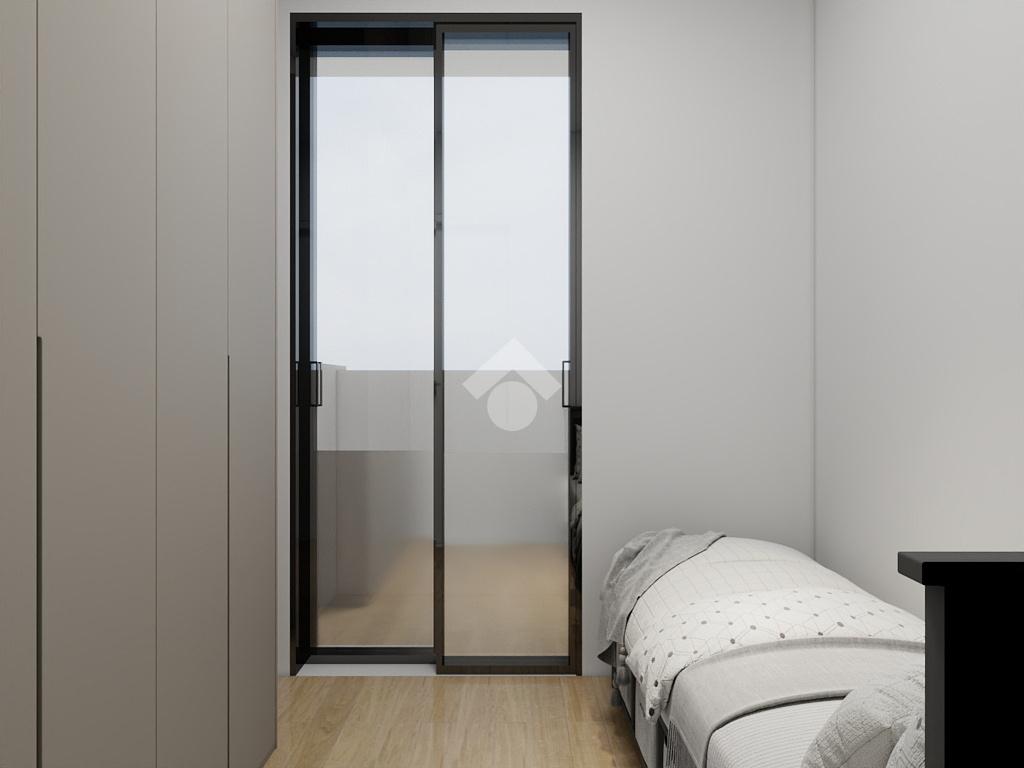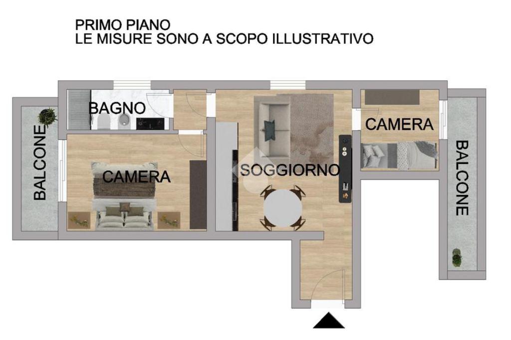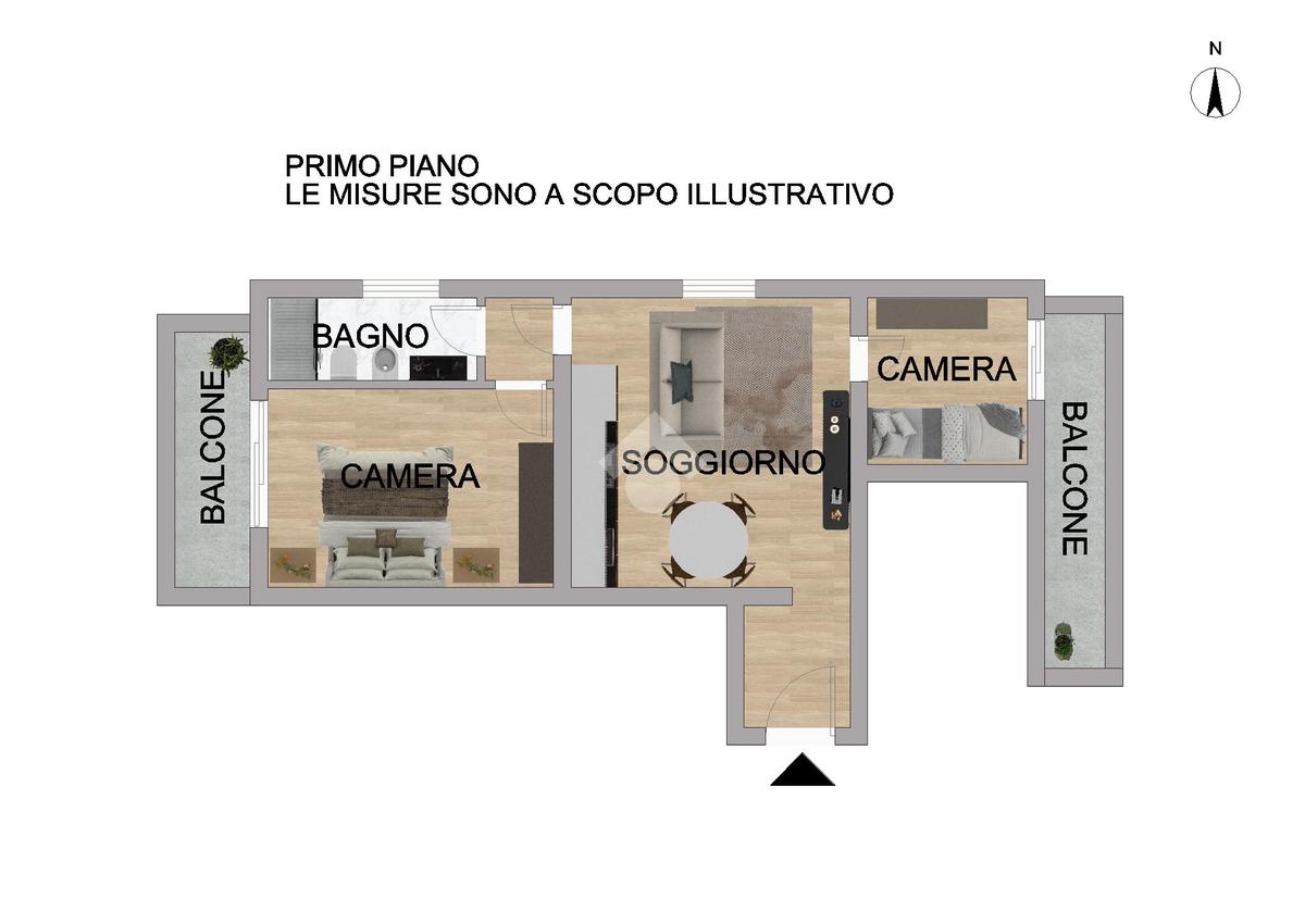 L’appartamento, situato al primo piano, si sviluppa su una superficie di circa 63 mq calpestabili ed è progettato per garantire ambienti funzionali, luminosi e ben distribuiti. La zona giorno accoglie un soggiorno con angolo cottura moderno e ben organizzato, pensato per offrire uno spazio conviviale e pratico nella vita quotidiana. La zona notte è composta da una camera matrimoniale e una cameretta, oltre ad un bagno finestrato realizzato con finiture contemporanee e materiali di qualità.